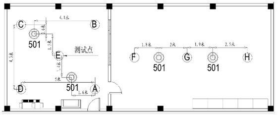 图5 走廊广播服务区测试点分布图