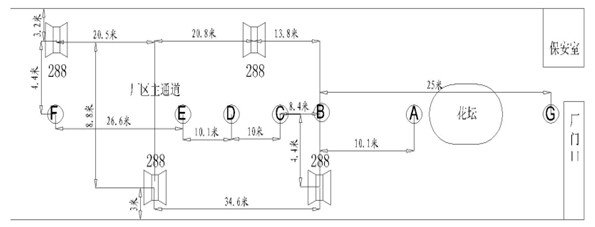根据“公共广播系统工程技术规范(草案)”第4章“公共广播系统的声学特性指标”和第6章“公共广播系统声学特性的测量方法”的规定和要求,我们对广州市声雅公司厂区的公共广播系统进行了声学特性的测试。