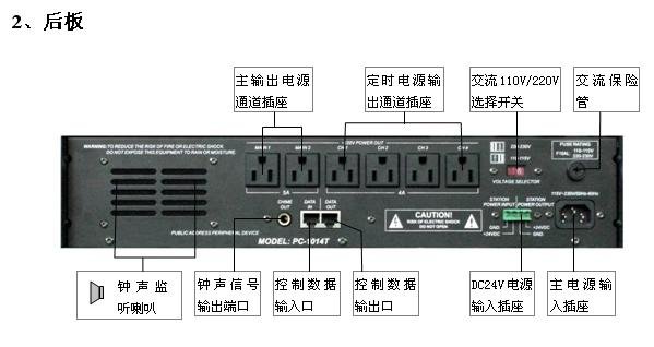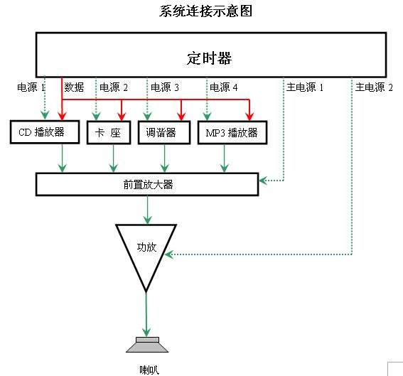 定时器在公共广播系统的作用是可以周为循环周期进行定时编程。用户可以根据自己的要求,按照一周内每天的实际需要编制定时点(每天可设置多达100个定时点),这些定时点既可以控制各种音源设备(如CD机、卡座、调谐器以及数码播放器等)的定时播放、某些周边设备(如广播分区器、信号矩阵器)的定时工作,也可以控制输出电源的定时开或关。定时器通常都有紧急信号触发输入口以及触发输出口,即使定时器的开关处于关断状态,当有紧急信号输入时,定时器也能自动打开输出电源通道,给前置和功放等设备供电,同时也能触发并打开时序电源控制器,以便给更多的设备供电,使系统能够实现紧急广播的功能。定时器都有掉电记忆的功能,使到所编制的定时点能长期保存。