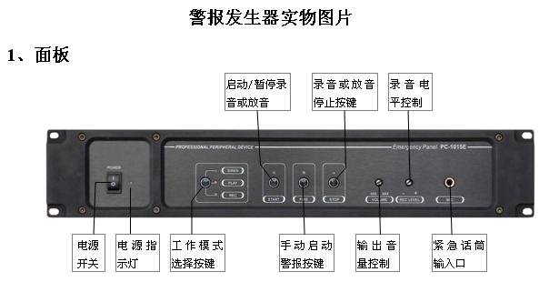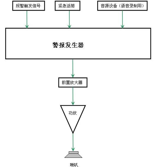 警报发生器的主要作用是产生警笛或固化语音信号,做为紧急广播的报警信号,例如发生火灾、地震、海啸或恐怖袭击等突发公共事件时,广播系统就能将这些刺耳的警笛或语音信号发送出去,起到提醒、警示和引导的作用。一般的警报发生器都有手动和自动触发功能,并可以根据用户的需要进行固化语音录制,录制的信号既可以从话筒输入,也可以从线路输入。此外,话筒输入通道除了可做为录音输入通道外,还具有优先功能,可做为紧急情况下的现场指挥使用。