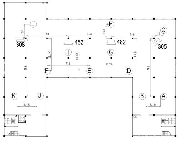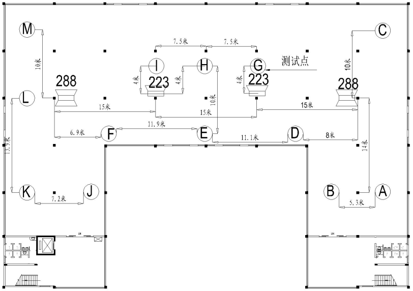 图5 走廊广播服务区测试点分布图