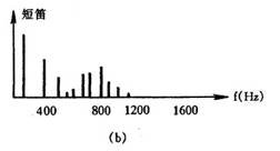 从另一个角度来说,各种声音都包含着特定的频率成分,而且各种成分的强度也不尽相同。针对这种情况,我们说每一种声音都具有自己的频谱。声音的频谱简称“声谱”。研究发现,一个声音之所以不同于另一个声音,主要是因为它们的声谱不同。图1 一2 ( a )是1kHz 纯音的声谱,它只有一条谱线,谱线在横坐标上的位置代表它的频率,谱线的高度代表它的强度。