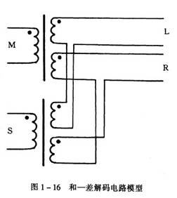 由M 、S 求解L 、R 的过程称为“解码”;反过来,M 、S 被称为是对L 、R 的“编码”。图l 一16 为由M 、S 求解L 、R 的电路模型,也就是对M 一S 解码的电路模型。这个电路不难理解,把M 、S 两个信号变压器的次级绕组顺向串联起来,显然可得到它们的“和”(即L 信号),而反向串联起来便可得到它们的“差”(即R 信号)。 M 一S 信号经解码之后即可重放,这时仍然按图1 一14 所示的方法配置,分别把L 、R 两个信号从左、右两路扬声器放出来。由于M 、S 两个话筒在空间上处于同一个位置,所以M 信号和S 信号中原则上不存在声级差以外的差别,是一种纯声级差型的系统。尽管其所包含的方位信息不如假人头模型丰富,但由于其差别模式单一,信号处理十分方便。值得指出,M 信号和S 信号的物理含义是十分明确的。M 是单声信息,在不必考虑声源方位时,我们就是这样拾音的;而S 是方位信息,它反映出左、右两个声道的声级差别。在单声系统中重放时,只须放送M 信号。而在立体声系统中,适当调节S 信号,就能修正或调节“声像”(在重放声场中声音的虚像)的方位;额外地加重S 信号,还能补偿由于种种原因造成的方位信息不足,操作十分方便。基于以上原因,现行的双声道立体声系统,几乎都是声级差型的系统。