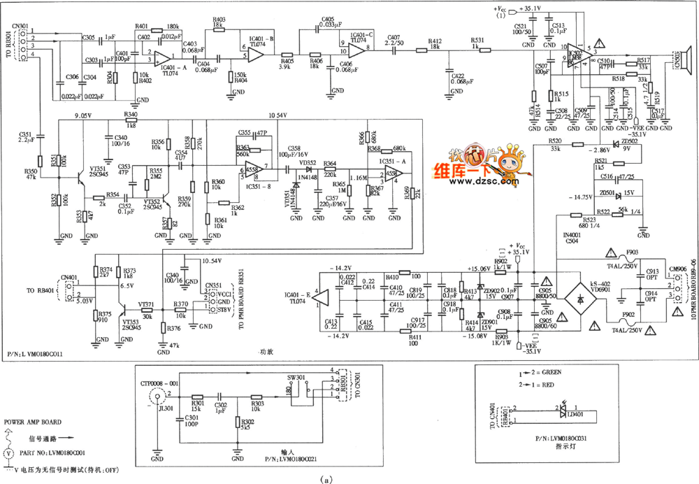 飞利浦SW2000有源重低音音箱功放电路图一如下所示: