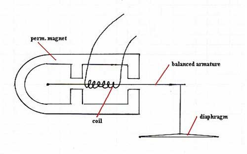 为了更好的回放记录被记录下的声音,1910年,S.G.Brown将驱动力和振膜分离,发明了’armature’电枢耳机。而在1910年,Baldwin又发明了’balancedarmature’平衡电枢耳机。电枢式耳机是在一个U型的磁铁的中间架设可移动铁片(电枢),当电流流经线圈时电枢会受磁化与磁铁产生吸斥现象,并同时带动振膜运动。这种设计成本低廉,虽然效果不佳,但在当时也是划时代的发明,该项技术多用在电话筒与小型耳机上。