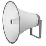 当时的广播设备讲求简单、节约、实用。广播网的核心设备是“扩音机”,典型的是带前置和收音的声频功率放大器。早期是电子管扩音机,后来是晶体管扩音机。扩音机追求的主要质量指标是最大不失真输出功率(总谐波失真要求很低,约不大于[2~5] %)。适用功率大多在 10 瓦到几十瓦之间,极少有百瓦以上的。这是因为那时大功率的电子管和晶体管都十分昂贵。由于扩音机的功率资源十分珍贵,所以要求使用高灵敏度的扬声器。如“舌簧扬声器”、高灵敏度的号角(俗称“高音喇叭”,如图 2-2)。为了尽量节约成本,农村中的广播线路已经使用了高压传输,并只使用单根铁线,靠大地构成回路。