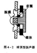 球顶型高音扬声器(Dome)的工作原理与纸盆扬声器相似,但振膜为近似半球形的球面,如图4一2所示。其振膜尺寸一般较小,通常只有