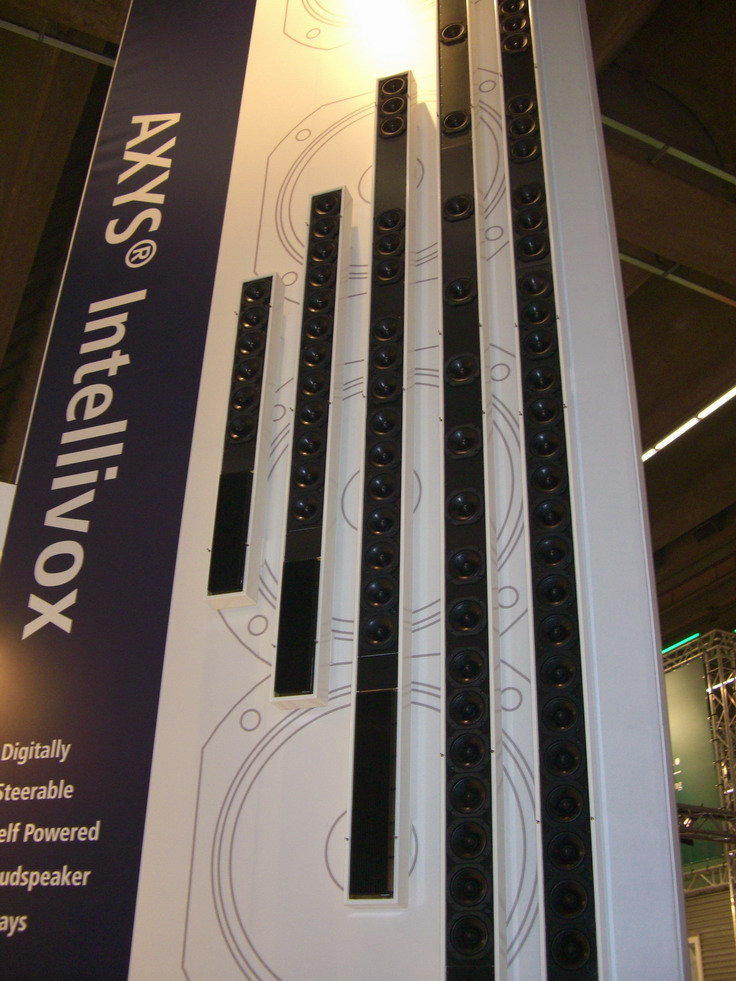Axys Intellivox线阵列音箱系统利用 AXYS(R)Intellivox DDC2.0 range软件控制音箱的声音指向。每个扩音单元按其特有专利的规则系统定位,而每个扩声单元通道拥有自己的音源通道,经数字信号处理(DSP)后传送,即每个扩声单元拥有自己独特一组的滤波器。这种技术让使用者可操作Intellivox线阵列的垂直分布,控制音箱声音指向。通过控制音箱指向性技术改善高混响声学环境的语言清晰度、提高语言可懂性。