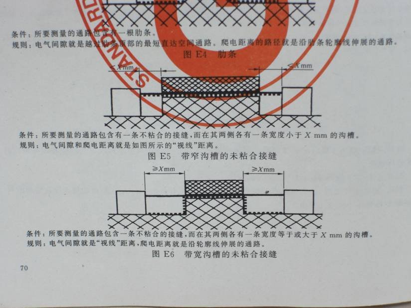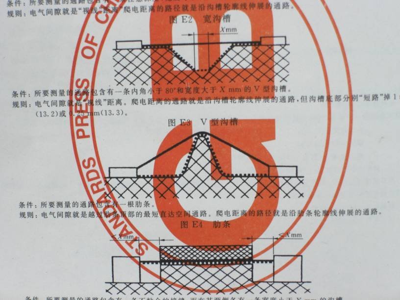 4、爬电距离:在两个导电零部件间沿绝缘材料表面的最短距离。