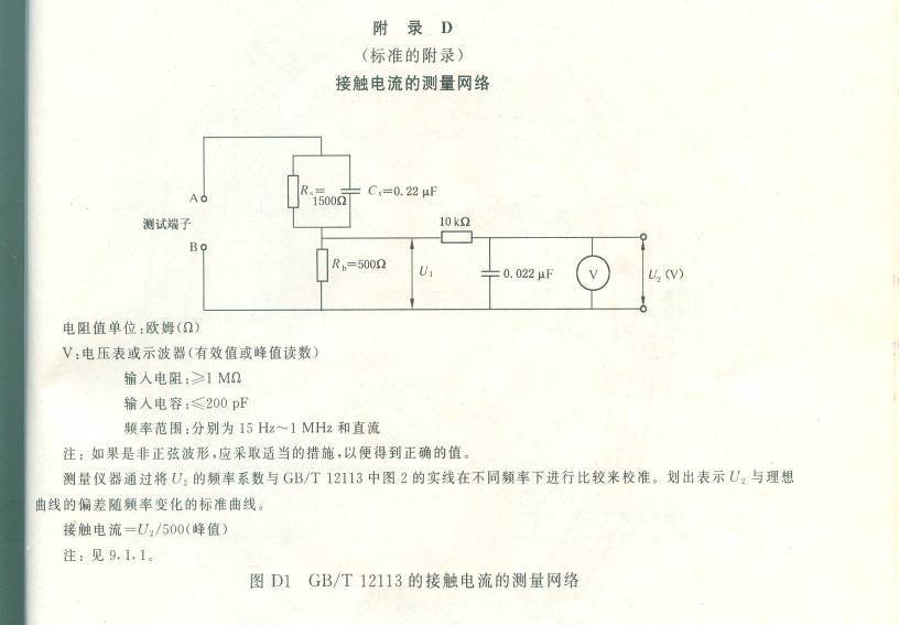 16、与电网电源导电连接:与电网电源的电气连接,当设备不接地时,通过2000 欧电阻器与电网电源的任意一极连接时,会在电阻器上产生大于0.7mA(峰值)的稳定电流。