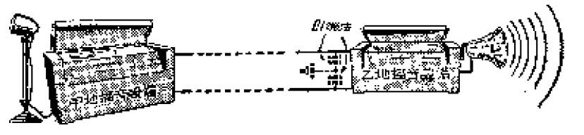 有线广播的音频信号,从甲地传到乙地(如图),那传输线就像接收无线电的天线一样,把无线电广播信号也送到乙地,时常使得有、无线电两种广播混杂起来,结果乙地的喇叭里听不清任何一种广播的声音。