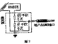 这种两用机也可以播放唱片,但因没有市电,只能用手摇式留声机。把原来留声器的唱头取去,改装一只电唱头来应用。可是电唱头的输出电压比话筒大得多,如果直接插到话筒插口里,会使电子管过荷,引起失真。可以照图2的办法,加装一个衰减器,把电唱头输出电压降低到和话筒的差不多,就可以直接插入话筒插口里来播放唱片了。