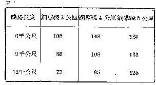 仅仅知道了线路上衰减值的限度,和在线路上不同的分配情况,对馈送线的设计仍是没有什么帮助的,尚需知道衰减和线路架设的式样、馈线上的电压, 线路的负荷及导线直径之间的相互关系,然后才能做好设计。但找出这些关系,要经过繁复的计算,并不容易。苏联的专家和工程师们,经过了深入地研究,根据计算和经验,已经创造出许多设计上有用的图表,使设计进程大大简化,现在我们将几种最常用而又简单的表格介绍在下面: