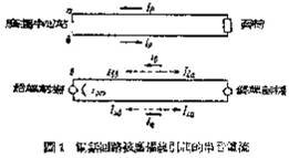 图1表示一个广播回路和一个电话回路。导线а和б上有电流Ip,分别在в和г导线上引起串音电流(Iва,Iга)和(Iвб,Iгб)。Iва和Iга是在一个方向,而Iвб和Iгб是在相反的方向(交流回路里,为了方便,是可以假定电流方向的)。同时因为距离不同,Iвб大于Iва,Iгб大于Iга。给果在导线в上的总串音电流为Iв=Iвб-Iва,而在导线г上的总串音电流为Iг=Iгб-Iг ?,方向分别是和Iвб及Iгб的方向相同。所以经过始端话机的串音电流Ipeз为Iв-Iг。
