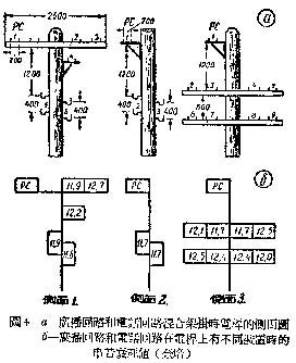 架挂时,应按广播回路的功率,参照上表来确定最低串音消耗值,然后按图4a和б选择一种混合架挂的方式,以便获得所需的串音衰耗(广播回路PC经常是在左上方第一位置上)。整个混合架挂的回路可以分成若干“区”,这些“区”可以包括有64,32,16甚至8个“基本间隔”;标准的区较长,有128个间隔。一个“基本间隔”系指相邻两杆档间的线段。终端一个“区”所包括的间隔数应为整数,必要时须迁移或补充木杆。每个“基本间隔”的长度和垂度相等最好,对平均值来说最大的长度误差不应超过10%,最大的垂度误差不应超过3公分。