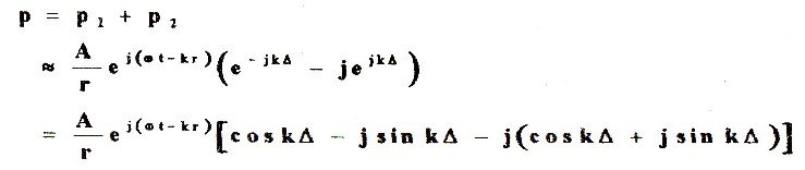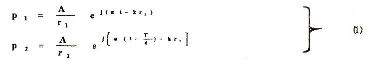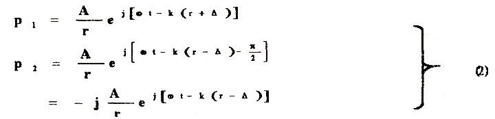 因此,不妨把A、B当作独立的小球源。根据波动方程,A、B在空间产生的声压分别为