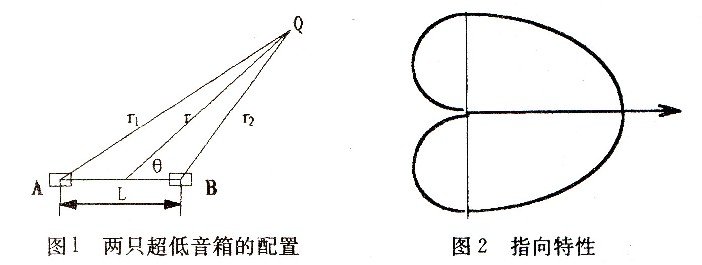 设有A和B两只超低音箱,配置如图1所示。馈以同值、同频的低频纯音信号,但B延时四分之—周期,且令