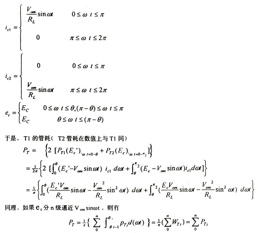 根据传统的摸拟放大概念,为了获得不失真输出,理论上声频功率放大器的最高效率为78.5%(乙类满功率状态)【1】。影响效率的最主要因素是管耗。乙类互补功放一侧输出管的管耗为
