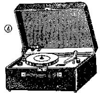 ②电唱机。它可以用唱片来播送各种节目。电唱机每分钟的转速一般有四种:即78转、45转、 331转、和162转等,可以播送粗纹和密纹的唱片。电唱机的外形见图4。 33