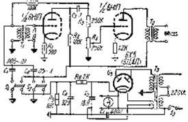 图中几个变压器的数据是:T1用一般5灯机输出变压器铁芯,初次级均用0.14公厘漆包线绕800圈。T2铁芯与T1相同,初级2,600圈(0.11公厘漆包线),次级500圈(0.14公厘线)。T3铁芯截面积约34平方公厘,初级两组,每组1342圈(0.25公厘线),次级高压3,000圈(0.14公厘线),次级低压76圈(0.32公厘),38圈处抽头接地。装后如果不起振荡,可将T1的A、B两头对换一下。用Ty250/1000型机时,输出可接到控制台的转播输入线路#1或#2上。其它机器,可经衰减器由唱头插孔输入。