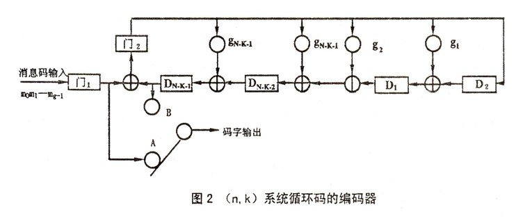 1.门1,2打开,接通A,信息码m0ml…mk-1输入;此时Dn-k-1,…,D0中即形成校验码;