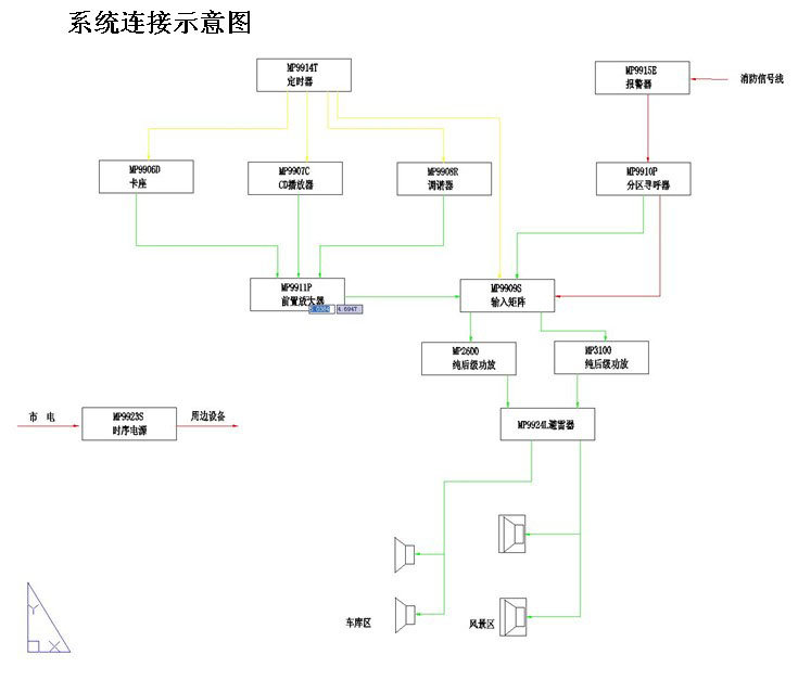 5、 消防部份采用DSPPA MP9915E 报警信号发生器,当消防中心有紧急信号传来时,它会自动激活及输出警笛声或预先录制的语音广播,同时可插入消防话筒进行现场紧急指挥。其中语音广播内容可随时录制及改写。