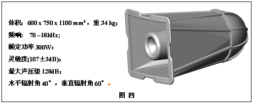 DSP3012是迪士普公司专利产品,本来是专为室外广场设计的大功率、长冲程、高灵敏度号角,其外观和主要参数见图四。