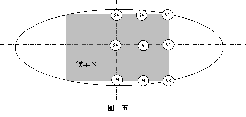 l 候车区粉红噪声声压级分布如图五(数据单位为dB):