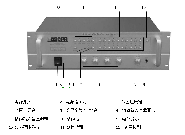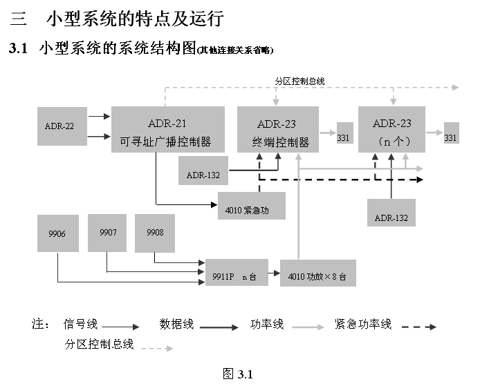 可寻址广播控制器已包括前置放大器、分区选择器的功能,配以功率放大器和少量其它设备,即可组成所需要的系统。